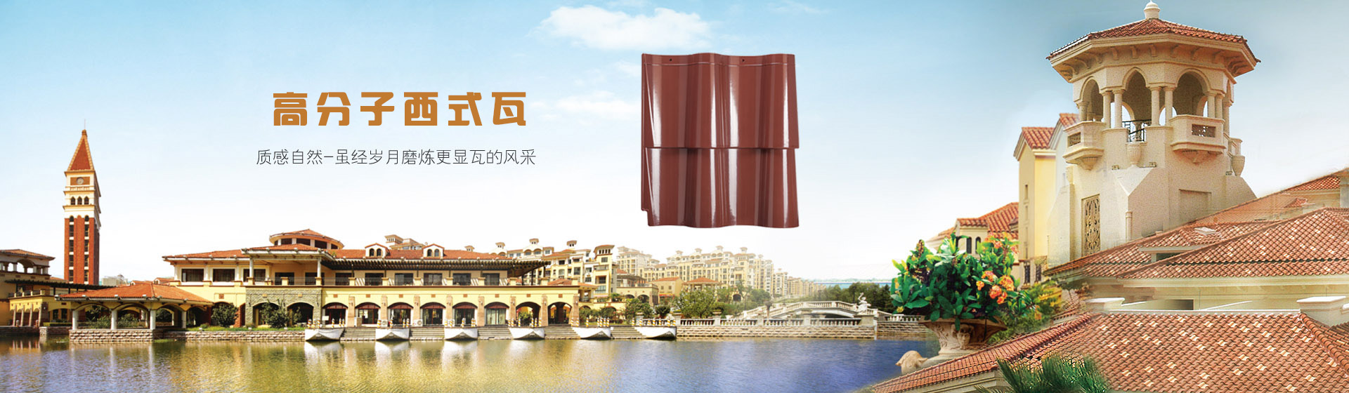 公司采用高分子材料高溫高壓模具成型的裝飾屋面瓦系列:仿古瓦、筒瓦、小青瓦、琉璃瓦、西式瓦等,集防水、隔熱、裝飾功能于一體。強(qiáng)度高、重量輕,安裝簡(jiǎn)便快捷,不需要做防水層。耐候性好,使用壽命長(zhǎng)、終身不漏水、不維修,徹底克服了傳統(tǒng)燒結(jié)瓦易松動(dòng)、裂紋而滲漏的缺陷,是現(xiàn)代中高端建筑理想的用瓦選擇。